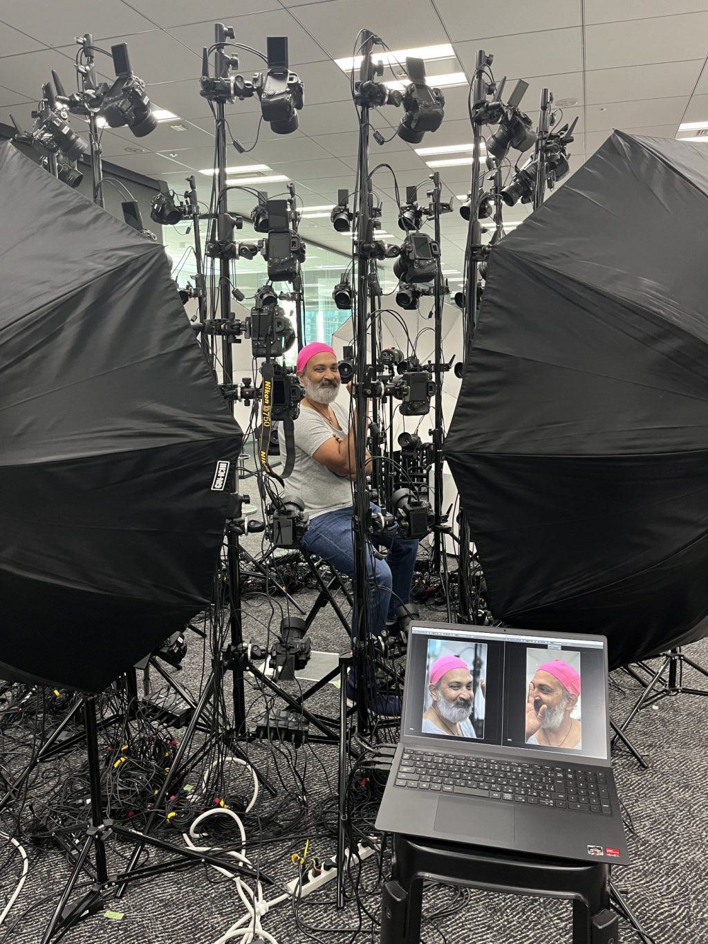 コジマプロダクションにてラージャマウリ監督の3Dスキャンをしている様子
