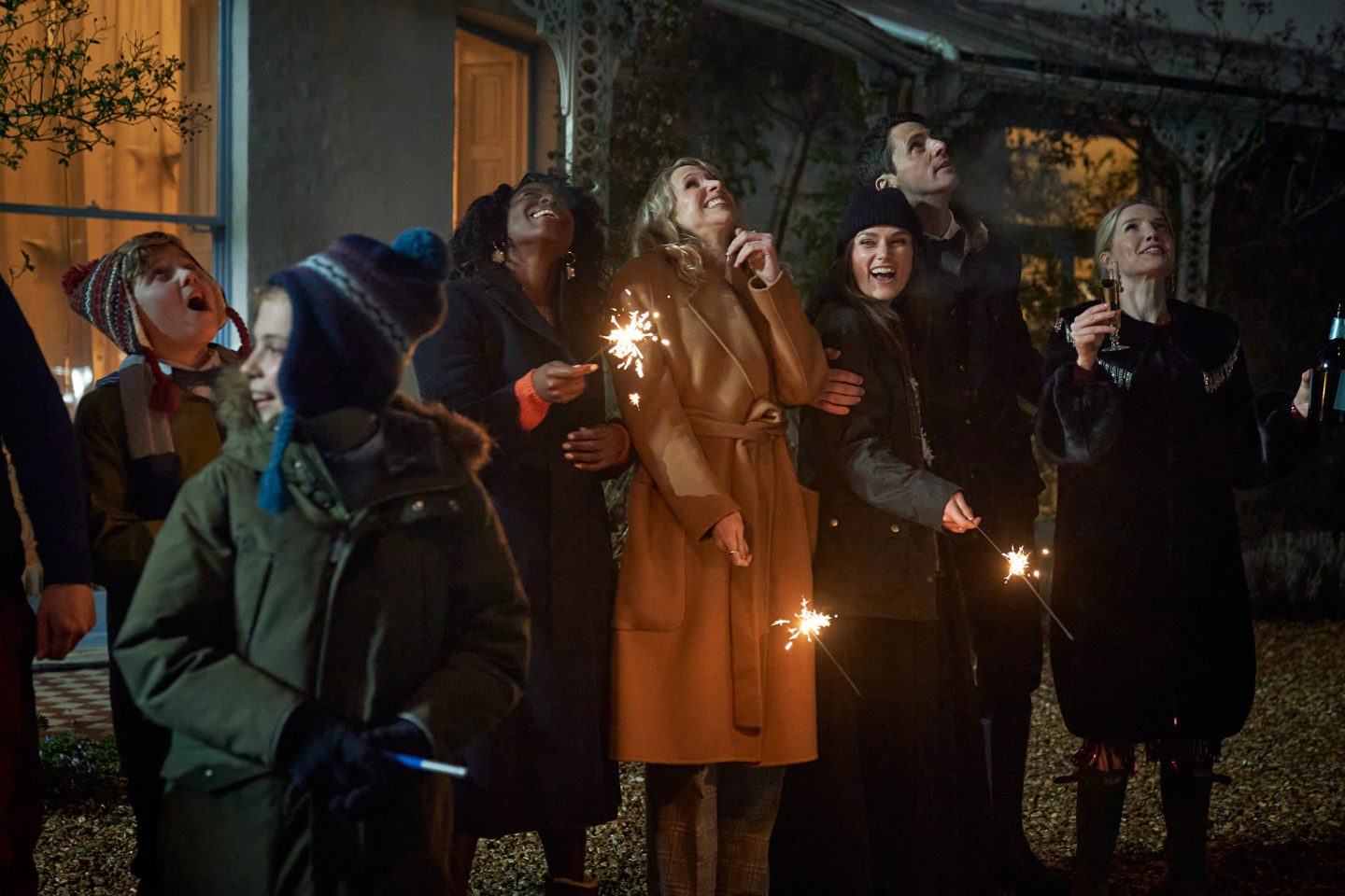 『サイレント・ナイト』の特徴は、あくまでもクリスマス映画として幕を開けるところだ。映画の序盤はとりわけライトなテイストで、シニカルだが軽やかなユーモアが魅力の、まごうことなき“イギリス流クリスマス・コメディ”。パーティー前後のコミカルな会話劇では、サイモン役のマシュー・グードやネル役のキーラ・ナイトレイら俳優陣による充実した演技と、不遜で不謹慎な笑いを気軽に楽しむことができるだろう。