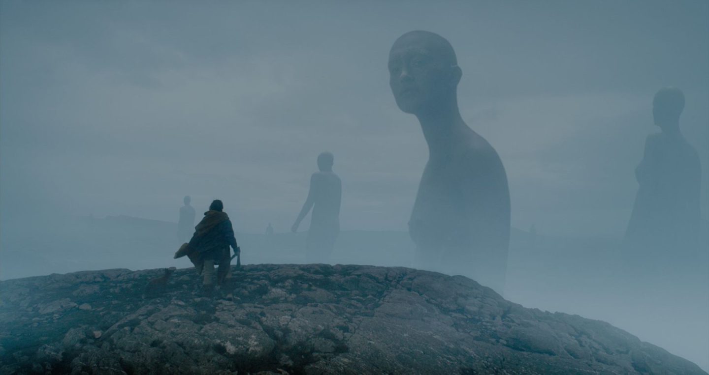 人間の言葉を話すキツネや、荒野に吊るされたガイコツなど、ガウェインが道中で遭遇する奇々怪々な物たちの中で、ひときわインパクトを放つのが、彷徨う巨人だ。その映像には明らかにロウリー監督のこだわりが見て取れる。