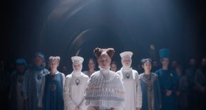 私は巨人が大好きなんです。そびえ立つキャラクターに本能的に惹かれます。ですから脚本に登場させたのですが、そこに私のジェンダーについての意識も込めようと決めました。そもそもアーサー王の伝説は男らしさを強調しており、今の時代では批判もされるでしょう。本作の巨人は、過去の価値観に囚われた世界を置き去りにして、遠くへ旅立つ存在にしました。それでちょっと女性的な外見なんです。おそらく巨人には服も髪の毛も必要ないと考え、あのようなデザインに行き着きました。私の坊主頭もヒントにして(笑)。