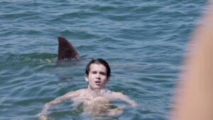 一方、女子高生コートニーは、立入禁止区域の小島で友人たちと羽目を外している最中、獰猛なサメの群れと遭遇してしまう。かろうじて彼女を助け出したのは、デビッドという偽名を用いて島の灯台に身を潜めていたブルースだった。