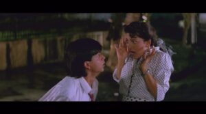 そして最後は、これがデビュー3作目となるシャー・ルク・カーンの初々しさ。それまでデリーでテレビ俳優として仕事をしていたシャー・ルクが、母の逝去を機にボンベイにやってきたのは1991年。同年に結婚もしたシャー・ルクだが、いくつかの映画から声がかかり、出演作が翌1992年に集中して、4本もの作品が封切られることになった。その中で本作『ラジュー出世する』は楽しい仕事だったらしく、後年、本作の監督アジーズ・ミルザーとシャー・ルク、ジュヒーは、3人で映画会社を設立する。今は消滅し、シャー・ルクと妻ゴウリーの会社に吸収されてしまったが、それほど息がぴったり合った3人の作品なのである。
