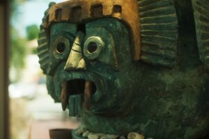 本作のブラック・デーモンは、前述の通り古代アステカの神トラロックの化身として登場。海上施設の従業員を幻覚で精神的に苛む、超自然的な怪物としても描かれている。そしてこの設定に付随し、作中にはたびたびトラロックの絵や像が顔を覗かせる。