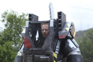 さらに、主人公フィンを演じたアイアン・ジーリングは、本作のヒットを受けて<Chainsaw Brands>というアパレルブランドの立ち上げまで行っています。ちなみにブランドロゴはチェーンソーを二つ交差させたもので、『シャークネード4(フォース)』にはロゴ入りの青いポロシャツを着て出演を果たしています。