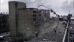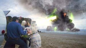 『シャークネード』を一言で言えば、「竜巻に巻き上げられたサメが空から降ってきて人を襲う」……そんなおバカな作品です。しかし、本編には単なるおバカ作品の一言では片付けられない、トンデモない映像と展開が待っているのです。
