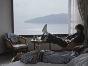 「第67回 ロカルノ国際映画祭」新鋭監督コンペ部門に正式出品された『息を殺して』(2014)や、「第74回 ヴェネチア国際映画祭」オリゾンティ部門に正式出品された『泳ぎすぎた夜』(2018)など、世界が注目する新鋭監督の一人である五十嵐耕平監督の最新作『水魚之交』は、海の見える古い観光ホテルへ旅行に来た佐野と宮田、2人の幼なじみが過ごす時間を描いた20分の短編作品。陰謀論に傾倒する宮田と、そんな宮田の考えを否定する佐野は口論になるが、その時、認知症を患う宮田の父親から電話がかかってきて……。