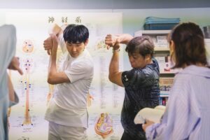 同時に解禁となった7、8話のオフショットでは、松田が施術でマッサージの大技を決める際のレクチャーを受けている一幕や、矢本悠馬が演じる中村ひろしの推しであるバーチャルチカぴょんの抱き枕を持った西野、モミ鉄の収録にケンシロウの仲間バット風の姿で参加するシーンでの矢本悠馬と司会役の本田力が笑いあうショットや、ユリア風の衣装で3人の鉄人と一緒にツボ押しポーズを決める西野の姿など、バラエティ豊かで撮影時の楽しげなが様子が垣間見える。