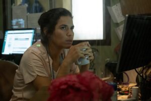 場面写真では、ローリング・キティの動画を徹底的に研究したポール・ダノをはじめ、各々がモデルとなった実在の人物へ寄せた役作りの成果も垣間見ることができる。