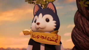 今回公開されたのは、首元の⻩色いバンダナがアクセントのハスキーの⻘年・ブルースの場面写真。船乗りとして世界中を旅しているというブルースが⻘空の下、ロープを手にかけているカットをはじめ、夕焼け空の下でフレアに優しい表情をみせるカット、丘の上からシルバニア村を愛おしそうに眺めるブルースとフレアの2ショットなど。映画初登場となるブルーグレー模様が凛々しいキャラクターに注目だ。