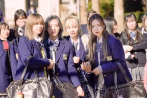 累計発行部数210万部突破の藤ももによる大人気少女コミック「恋わずらいのエリー」(講談社「デザートKC」刊)が、宮世琉弥と原菜乃華のW主演により実写映画化、3月15日(金)より公開される。このたび、本作の主題歌を担当する9人組ガールズグループ・NiziUが、映画本編に登場するする様子が収められた貴重なオフショットが解禁となった。