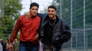 本作で主人公の“ギャングスタ・ラッパー”「Xatar(カター)」役を演じるのは、今ドイツで最も勢いのある若手イケメン俳優のエミリオ・ザクラヤ。子役からキャリアをスタートさせ、これまで「悪魔は私の大親友」(マルコ・ペートリ監督:日本未公開/Netflixで配信中)など、ティーン向けラブコメ映画で活躍しドイツでアイドル俳優的なポジションだったザクラヤは、本作をきっかけに大変貌。卓越したラップスキルに端正な顔立ちを引き立てるスキンヘッド、そしてフルコンタクト空手のドイツ選手権で優勝した経験もある屈強な肉体で、オラオラなカターを見事に演じてみせた。