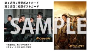本作の公開を記念して、初週と2週目に数量限定の入場者プレゼントの配布が決定した。初週の横型ポストカードは映画の場面から、2週目の縦型は本国ビジュアルから作られたポストカードだ。無くなり次第終了となる。