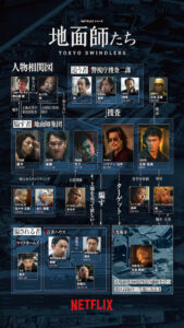 W主演に綾野剛と豊川悦司を迎えた大根仁監督最新作『地面師たち』が、7月25日(木)よりNetflixにて独占配信される。このたび、まだまだ謎が多い本作において、100億円を巡る不動産詐欺を手掛ける〈地面師〉グループのそれぞれの役割、そして目から鱗な詐欺手口の一部が垣間見える特別映像と、複雑に絡みあうキャラクターたちの相関図が解禁となった。