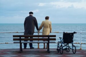 2014年夏。イギリスの老人ホームで寄り添いながら人生最期の日々を過ごす老夫婦バーニー(マイケル・ケイン)とレネ(グレンダ・ジャクソン)。声優/ナレーターの諏訪部順一がナレーションを務める予告編では、バーニーがレネを食後の散歩に誘い、車椅子を押して海岸沿いをゆったりと散歩するシーンから始まる。