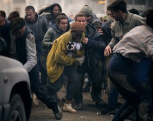 世界が沈黙した日[DAY 1]を描く本作の舞台は、これまでの田舎町から一転、「音を出さないことが不可能」な大都市・ニューヨークへと移り変わり、阿鼻叫喚の群衆、そして彼らの日常が破壊されてゆく様子が描かれている。これまで語られてこなかった“何か”の襲来を映し出すことで、作品はディザスター映画の要素を帯び、圧倒的なスケールアップを果たしている。