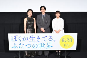 主演に吉沢亮を迎え、呉美保監督9年ぶりの長編作品となる『ぼくが生きてる、ふたつの世界』が、9月20日(金)より公開される。9月5日(木)、「新宿ピカデリー」にて完成披露上映会が実施され、主人公・五十嵐大を演じた主演の吉沢亮、母・明子を演じた忍足亜希子、そして呉美保監督が登壇、作品への熱い思いを語った。