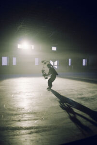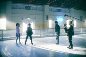 撮影も務める奥山監督自らカメラを抱えてスケートリンクに入り、キャストたちとともに滑りながら撮影することで、臨場感あふれる映像。スケートリンクを滑っている足のカットは、カメラマンが氷上で併走しないと絶対に撮れないカットで、足の動きで登場人物の3人の心が、練習を重ねることでどんどん近づいていく瞬間を捉えている。