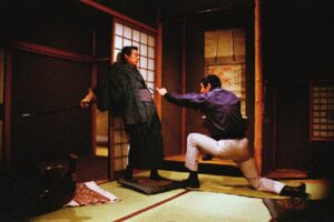 「義理・人情」という日本的な観念で結ばれた日米の男が、巨大なヤクザ組織に立ち向かう姿を描いた本作。もちろん最大の見どころは主人公ハリーを演じたロバート・ミッチャムと、彼を助ける元ヤクザの田中健を演じた高倉健、日米を代表する名優の競演だ。そして健の妹であり、ハリーと浅からぬ縁を持つ英子を演じた岸恵子の美しさにも目を奪われる。