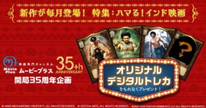 また「ムービープラス開局35周年」記念キャンペーンとして、9月よりラージャマウリ関連作のデジタル・トレーディングカード(全35種)を配布中。このデジタルトレカは特設サイトや映画記事、そしてX投稿など複数媒体で発表されている「パスコード(全18種)」を入力することでGETできる。