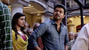 そんな本作でヴィジャイが演じるのは、“カッティ(刃物)”の異名を持つ詐欺師のカディルと、地方の農民を救おうとする社会活動家のシーヴァの二役。そして『ランガスタラム』(2018年)でラーム・チャランと、『ブリンダーヴァナム 恋の輪舞』(2010年)でNTR・ジュニアと共演したサマンタがヒロインを演じ、彼女が出演した“あるヒット作”の小ネタも差し込まれるなど、インド映画好きならば思わずニヤリとしてしまうでしょう。