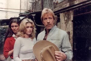 10代で米空軍に入隊したノリスは韓国に配属された際に空手を学び、退役後は国内外で数々の大会を制覇。やがてアメリカにおける武道家を代表するような存在となった彼は、道場を経営し映画スターに稽古をつけることもあった。そして30歳のときに交流のあったブルース・リー経由で映画に関わるようになり、ついに本格的に俳優デビューを果たす。そう、『ドラゴンへの道』(1972年)の武術家コルト(字幕ではゴードン)役である。