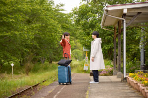 生まれもったピアノの才能がありながらも、かつてプロのミュージシャンを目指していた父からは反対され、東京の音大へ進むことに葛藤するアキト(八木勇征)。生まれつき体が弱く、周りに上手く馴染むことができなかったハルヒ(井上祐貴)の一番はじめにできた友達がアキトだった。ハルヒにとって特別な存在であるアキトと駅で向き合う姿には寂しさも漂っているが、確かな友情があることが伺える。