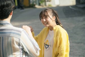 場面写真は、上白石萌歌演じる美海と中島裕翔演じる琉晴が、2人きりの教室で楽しそうに談笑する仲睦まじい様子をはじめ、幼馴染ならではの関係性を捉えたカット。 学生時代から美海を密かに想っている琉晴。だが、美海が学校の先輩・湊(赤楚衛二)を好きな事に気づいているため、大好きな彼を追いかけて、上京していく彼女への気持ちを抑えて、応援する様子が印象的なシーンだ。笑顔で美海を送り出した後も、遠い沖縄の地で、ずっと待ち続ける琉晴の一途な姿には胸が締め付けられる。