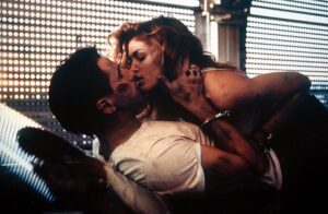 そして、モデル業界を制覇したシンディの映画デビュー作にして唯一の主演作が、1995年の『フェア・ゲーム』。当時の日本版予告映像では、『ダイハード』シリーズのジョエル・シルヴァー製作! 『バック・ドラフト』のウィリアム・ボールドウィン! スーパーモデル、シンディ・クロフォードのデビュー作品!! と推されていたが、じつはそんな本作が現在CSで放送中なので、TV鑑賞に備えて基本情報をざっくり復習しておこう。