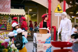 そんな本作は魅力的な細胞たちに加え、ファンタジックで独創的な世界として実写化された“人間の体内”も大きな見どころ。細胞にとって非常に広大な人体内では、たとえば酸素を運ぶ赤血球たちが道に迷わないように、カラフルかつユニークな看板が随所に掲示されている。