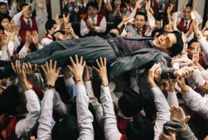 映像は、詐欺師チン(トニー・レオン)が、金山大廈(ガムサンタイガ)、通称“ゴールデン・ヒル・ハウス”の虚偽取引を、香港最大手銀行の御曹司に持ちかけるシーンからスタート。世間に売買の噂が流れると、ゴールデン・ヒル・ハウスを所有する嘉文(カーマン)世紀グループの株価が急騰。これは嘉文株の価値を上げるためのチンの策だったのだ。チンの絶好調ぶりを表すかのように、ボーイズ・タウン・ギャングによる「君の瞳に恋してる(Can’t Take My Eyes Off You)」が流れ出す。その週、株価が16ドルに高騰すると、誰もが嘉文株を買い求め、さらに20ドルまで上昇。チンは証券取引所のプロたちが真相を知らないまま踊らされる様子を見て、全身をくねらせ喜びを大爆発させる。盛り上がりが最高潮を迎えたところでディーラーたちはチンのもとに一目散に駆け寄った。まるでロックススターさながらに、両手を広げたチンを無数の手が支え、人々の頭上を越えて行く。