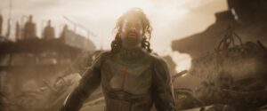 ディーピカー・パードゥコーン演じる“運命の子”を身ごもったスマティに巨額の懸賞金がかけられる。そんな彼女を守るアシュヴァッターマンの前に、賞金稼ぎであるバイラヴァが現れた。身長2.5メートルという巨体を誇るアシュヴァッターマンは、金属で作られた頑丈な手錠などものともせず、立ち向かってくるバイラヴァを軽々と投げ飛ばしてしまう。人ならざる跳躍で砂漠の乗り物をいとも簡単に飛び越え、バイラヴァを追い詰めるアシュヴァッターマン。そして、負け知らずの本気を出しコンクリートを粉砕しながらアシュヴァッターマンへと拳を向けるバイラヴァ。スマティを巡って争う最強の男たちの激しい戦いの様子が映し出されている。