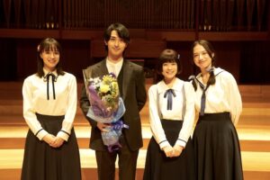 今回新たに横浜流星の出演が発表され、横浜演じる典真と広瀬演じる美咲の撮影シーンを捉えたメイキング映像が公開。映像では、横浜が静かにピアノに向かい、劇中合唱曲のイントロを奏でるシーンが映し出される。横浜が「ピアノは初めてで不安でしたが、『声は風』という素敵な楽曲に一心不乱に取り組みました」と語る通り、真摯に役に向き合ったことを明かした。