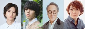 今回、発表になったのは、ジュノン・スーパーボーイ・コンテストのグランプリを受賞し、「仮面ライダーエグゼイド」で主演デビューして以来、幅広く活躍する飯島寛騎。TV ドラマ「大豆田とわ子と三人の元夫」や CX「ビリオン×スクール」に出演し、注目を集め今後の活躍が期待される小泉光咲。また、TV、映画で圧倒的な存在感のベテラン俳優、佐野史郎。映画『お引越し』でのデビュー以来、その演技が高く評価され、以降、映画、TV、舞台など幅広いジャンルで活躍している田畑智子ら 4 人のキャスト。