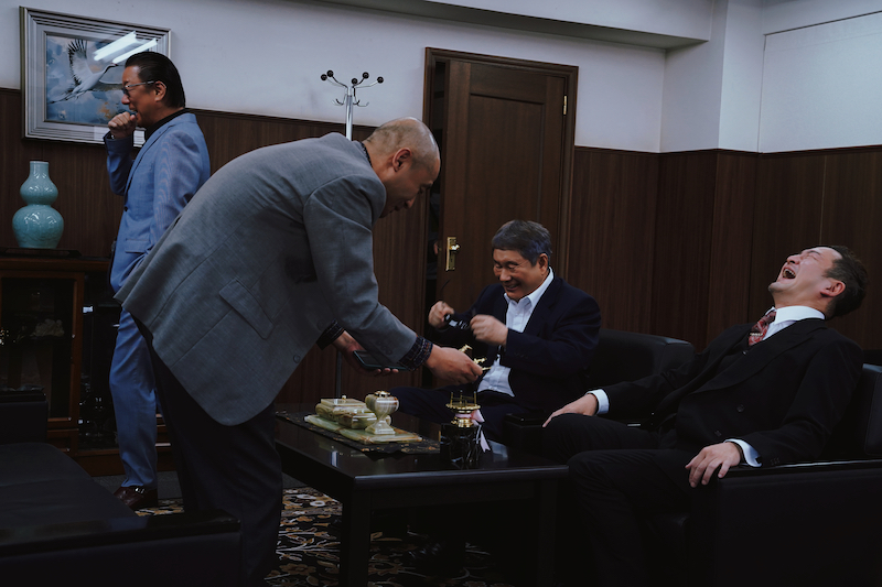 劇団ひとりや鈴木もぐらなど芸人キャスト陣は蝋人形のような奇妙な存在感だが、思わず笑ってしまう白竜やアドリブをまんま見せる恫喝演技に、かろうじて人間味が乗っかってくる。『アウトレイジ』世界に「モンティ・パイソン」や『裸の銃を持つ男』シリーズ、初期ジム・キャリー作品の風味をまぶしたような、我々がテレビで見てきた“ビートたけし”も顔をのぞかせる、シュールかつバカバカしい面白さだ。