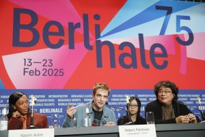 ベルリン国際映画祭公式上映のレッドカーペットには制作陣も加わり、華やかなドレス姿の3女優が花を添え、革ジャンにトラックパンツ姿のパティンソンは笑顔でファンサービス。続いて行われた公式記者会見に顔を揃えた監督とキャストは全員カジュアルな装いでプレスからの質問に応じた。