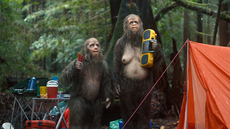 メインビジュアルでは、キャンプをしていたと思われる人々の“忘れもの”を片手に佇む2頭のサスカッチが捉えられている。ラジオカセットを手に持っているサスカッチは、なんと『マッドマックス 怒りのデス・ロード』などでも知られるライリー・キーオ。その見事な変貌っぷりからも目が離せない。