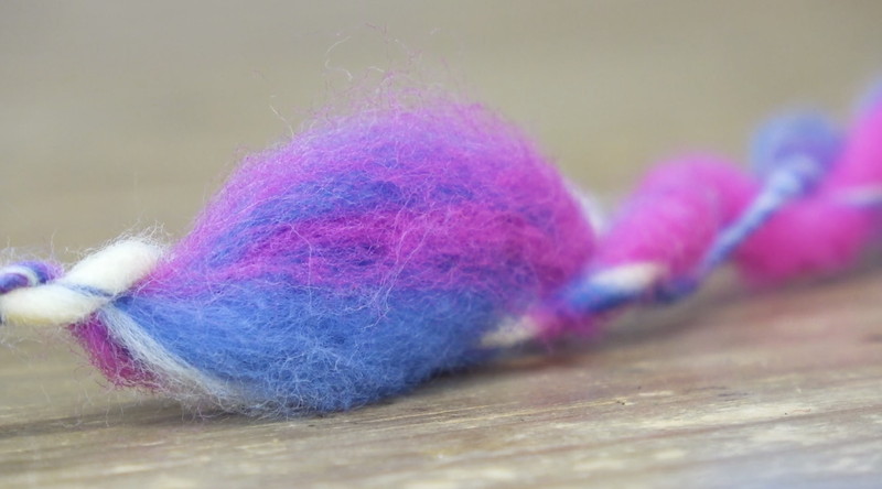 そして映し出されたのはカラフルな色に染まった綿。「2色3色って混合して混ぜ合わせて、糸を紡いでいくっていうのは綿では見たことがない。ここまで来るのに20年くらいかかりました」と語る鈴木さんの手によって紡ぎ出された糸は一定の太さではなく、「規格外」と本人も説明するまさにユニークなもの。