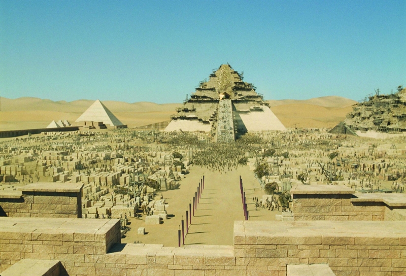 監督は“破壊王”の異名を持つローランド・エメリッヒで、2004年の『デイ・アフター・トゥモロー』と2009年の『2012』の間の作品。エメリッヒ自身が「ググって」見つけたアイデアと言うだけあって時代考証はハチャメチャで、砂漠の大ピラミッド建造に駆り出されるマンモスなど、心のMMRが「な、なんだってーー!!」と叫びそうな楽しいビジュアルが満載。とにかくエンタメ重視のトンデモ描写を連発させる。