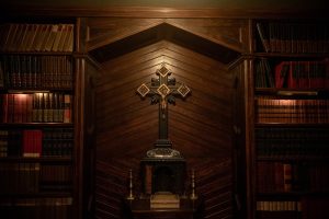 シーン写真は4点。リード自らが作成した自身の家の迷路を明かした木彫りの模型、膨大な知識量の元となる膨大な書籍、タイマー仕掛けの家の鍵のほか、神を祀る不気味な祭壇まで。いずれも、この家の暗部に迫る重要なアイテムを捉えたカットとなっている。