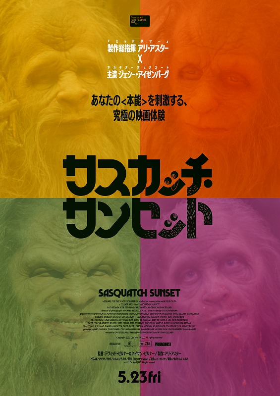 製作総指揮:アリ・アスター×主演:ジェシー・アイゼンバーグで贈る、映画史上最も奇妙で心を奪う自由で壮大な映画『サスカッチ・サンセット』が5月23日(金)より新宿ピカデリーほか全国公開。マナー予告映像とアザービジュアルが解禁された。