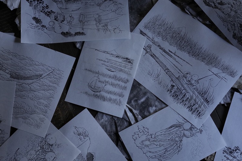撮影現場での様子について永瀬は、「大森立嗣監督の筆、長澤まさみさんの筆、皆さんが持ち寄ったそれぞれの筆と様々な濃度の墨によって描かれた一枚の合作作品の様な素晴らしい現場で葛飾北斎として生きられた日々は一生忘れられないものとなりました」と振り返った。続けて「揺れ動く不安定な感情の行く末を案じる時、ふと気がつくと、そこには必ず大森監督の視線が寄り添っていただけている」と、監督との関係を語りつつ、「大胆に自由に生きられた北斎の“心”というべき存在・お栄(応為)。長澤まさみさんは、僕にとってまさに同様の存在でした」と、応為を演じた長澤まさみにも深い信頼を寄せていることを明かしている。