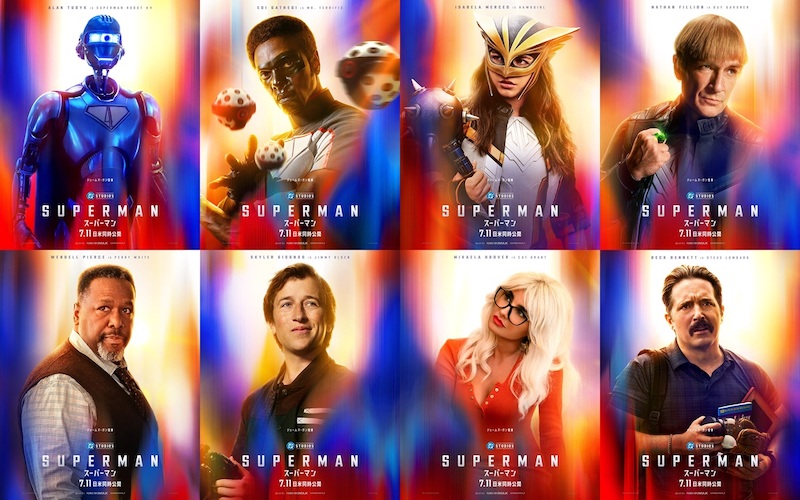 地球のために戦うヒーローたちに加え、クラーク・ケントやロイス・レインと共にデイリー・プラネットで働くジミー・オルセン(スカイラー・ギソンド/下段左から2番目)、ペリー・ホワイト(ウェンデル・ピアース/下段左端)、キャット・グラント(ミカエラ・フーバー/下段右から2番目)、スティーブ・ロンバード(ベック・ベネット/下段右端)を映し出したキャラクターポスターも解禁となり、スーパーマンを取り巻く人間ドラマにも注目だ。