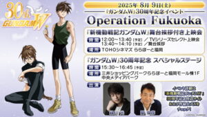 『ガンダムW』30周年を記念して、8月9日(土)に『ガンダムW』30周年記念イベント Operation Fukuokaの開催が決定した。