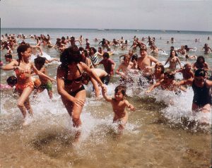 環境活動家であり長距離スイマーのルイス・ピュー氏は、サメに対する誤解を解くため、映画公開50周年に合わせてマーサズ・ヴィニヤード島を泳いで一周するという挑戦を行った。水温約8度の中、12日間かけて約100kmを泳ぎ切り、「サメと和解すべき時だ」と訴えたそうだ。