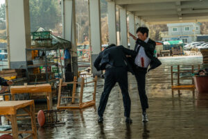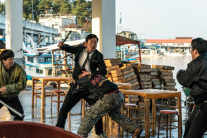 弟のソクテが死んだあの夜、何があったのか?弟の死を悲しみながらも真実を追うミンテ(ハ・ジョンウ)、彼の動きを阻止しようとする勢力。複数の相手に対し無表情で前へ前へと突き進んで行く…。ジャージでもスーツでも、殴る、蹴る、突き飛ばす、その場にあった冷凍した魚をも凶器にして振り回す。真実を問い詰める鬼気迫るシーンからは、ミンテの悲しみから怒りへと変わる、壮絶な復讐シーンが窺える。