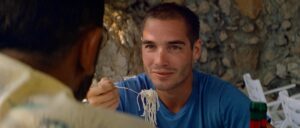 ジャン・レノ演じるエンゾが海を臨むレストランで美味しそうなパスタを食べる名シーンが公開された。このロケ地は有名ホテル・カポタオルミーナの中に実際に存在するレストランで、日本はもちろん、世界中から『グラン・ブルー』ファンが集うほど。社会現象にまでなった本作への熱狂ぶりを感じさせる人気レストラン。映像は、幼い頃から潜水の腕を競い合ったジャックとエンゾが再会を喜び一緒に食事をする和やかなワンシーン。日の光を反射させてキラキラと輝く海を背に、思い出話が展開されていく。168分、海の中の深いブルーだけでなく絶景も美しい映像で楽しめる本作の魅力が詰まった映像となっている。