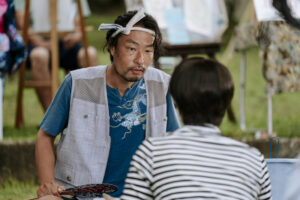 場面写真は、奏介の後輩・立花の母親役を演じる河井青葉が微笑む姿、街のお祭りの縁日で金魚すくい屋の人を演じる吉岡睦雄、笑ってはいけない不思議な「静か踊り」の厳正なる審査員を演じる鈴木卓爾、テルオが起こすある事件に関わる弁護士役の黒田大輔、そして、奏介のクラスの担任で新聞部の顧問・大岩役の宇野祥平の姿が収められている。これまで明かされていた街の少しおかしな大人たちがさらに増え、クセの強い個性に期待が高まる写真となっている。