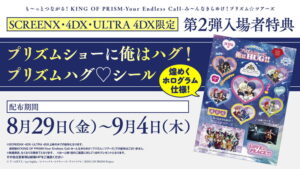 SCREENX・4DX・ULTRA 4DX版となる「も~っとつながる!KING OF PRISM-Your Endless Call-み~んなきらめけ!プリズム☆ツアーズ」限定の週替わり入場者特典第2弾の配布が決定。
