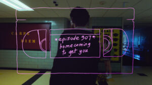 映像の冒頭では、90年代を思わせる懐かしのVHSテープのイラストに、「*episode 307*homecoming to get you(“307話 君を迎えに”)」とピンク色で描かれ、オーウェンとマディを夢中にさせる深夜のテレビ番組「ピンク・オペーク」の各週のタイトルが画面に描かれていく。これは、家が厳しいためリアルタイムに「ピンク・オペーク」を見られないオーウェンのためにマディがビデオを毎週貸しているときのメッセージだ。