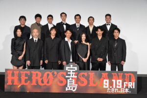 いよいよ来週末に公開が差し迫るなか、9月9日(火)に、東京・六本木の地で『宝島』東京プレミアが開催となった。豪華絢爛なレッドカーペットが敷かれた会場には、主演の妻夫木聡をはじめ、広瀬すず、窪田正孝、永山瑛太、塚本晋也、中村蒼、瀧内公美、栄莉弥、尚玄、木幡竜、奥野瑛太、村田秀亮(とろサーモン)、デリック・ドーバーら超豪華キャスト陣、そして妻夫木とともに日本中を巡ってきた大友啓史監督の14名が一堂に大集結。カーペット会場に集まった多くのファンらと1時間以上にわたる交流を楽しんだ一同は、続く舞台挨拶でも『宝島』に懸ける熱い想いをそれぞれ熱弁。何もかもが規格外の本作に負けないキャストたちの熱気が歓声となって劇場内を埋め尽くす、一夜限りの盛大なプレミアイベントとなった。